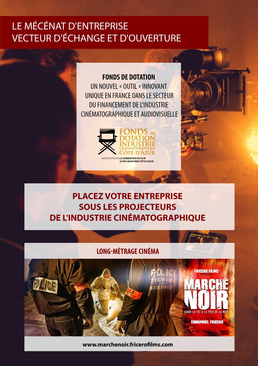 Le mécénat culturel pour produire « Marché Noir », le premier long-métrage d’Emmanuel Fricero ! Dans le cadre du développement du film, la société de production Fricero Films lance une grande opération de mécénat culturel avec la Commission du Film Alpes-Maritimes Côte d’Azur auprès des particuliers et des entreprises partout en France. Le principe est simple : […]