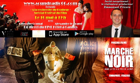 En savoir + ›Le 17 mai 2015, Emmanuel Fricero était l’invité de Sound Radio 06 dans l’émission « A la recherche du bonheur », en direct du Festival de Cannes au Five Hôtel. Il a parlé du succès de son dernier court-métrage « La Curée » et de son premier long-métrage « Marché Noir ». http://www.marchenoir.fricerofilms.com