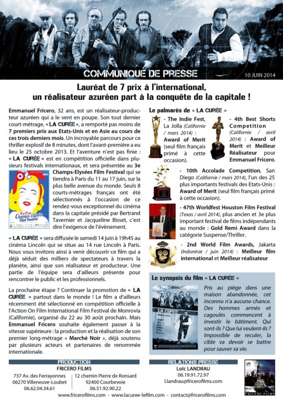 En savoir + ›« La Curée« , le film d’Emmanuel Fricero aux 8 récompenses internationales est actuellement au 20th Palm Springs ShortFest & Film Market en Californie du 17 au 23 Juin 2014 !