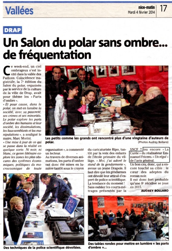 En savoir + ›« La Curée » du réalisateur Emmanuel Fricero « Un régal » de l’avis général – Article de presse sur le Polar à Drap paru le 4 Février 2014 dans le Nice Matin.