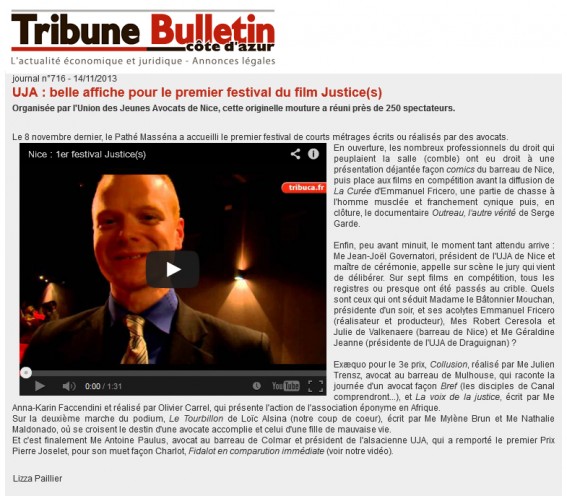 En savoir + ›Article de Presse de la Tribune Bulletin sur le Festival du Film Justice(s). « La Curée » d’Emmanuel Fricero, une partie de chasse à l’homme musclée… http://www.tribuca.fr/blog/nice-uja-belle-affiche-pour-premier-festival-du-film-justice%28s%29.php