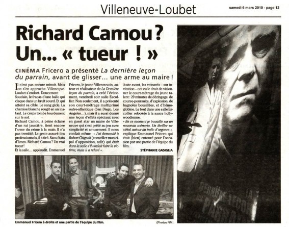 En savoir + ›Nice Matin – Cinéma: Fricero a présenté « La Dernière Leçon du Parrain » Article de presse paru le Samedi 6 Mars 2010 dans le Nice Matin.