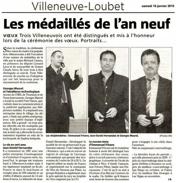 Nice Matin – Les Médaillés de l’an neuf… Le Success story d’Emmanuel Fricero ! Article de presse paru le Samedi 16 Janvier 2010 dans le Nice Matin.