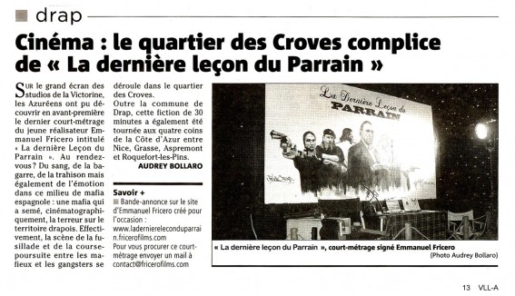 En savoir + ›Cinéma : le quartier des Croves complice de « La dernière leçon du Parrain » Article de presse du Nice matin paru en septembre 2008.