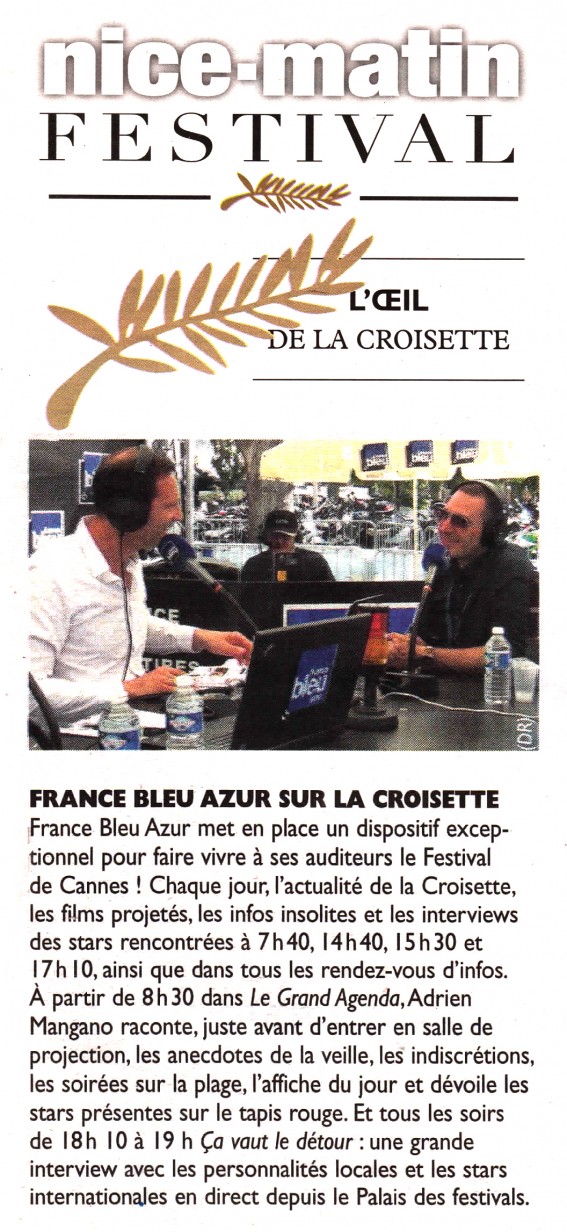 En savoir + ›Bonne surprise ce matin dans le Nice-Matin avec une photo du réalisateur-producteur Emmanuel Fricero à l’occasion de son passage sur la radio France Bleu en direct du Festival de Cannes !