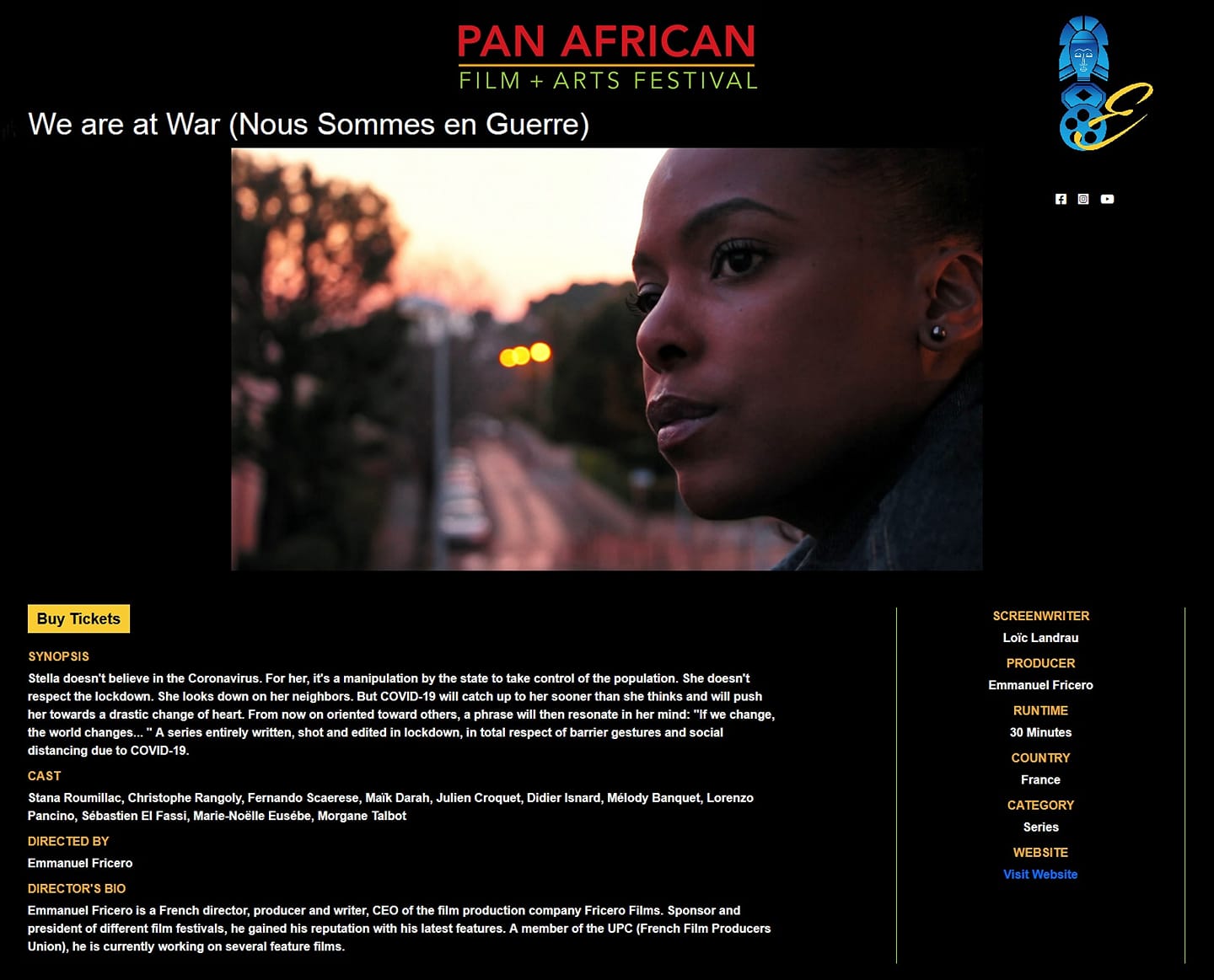 10 MARS 2021 / Médias / Nous Sommes En GuerreActuellement en compétition au Pan African Film & Arts Festival de Los Angeles voici la fiche de présentation de notre mini-série click here « Nous Sommes en Guerre »